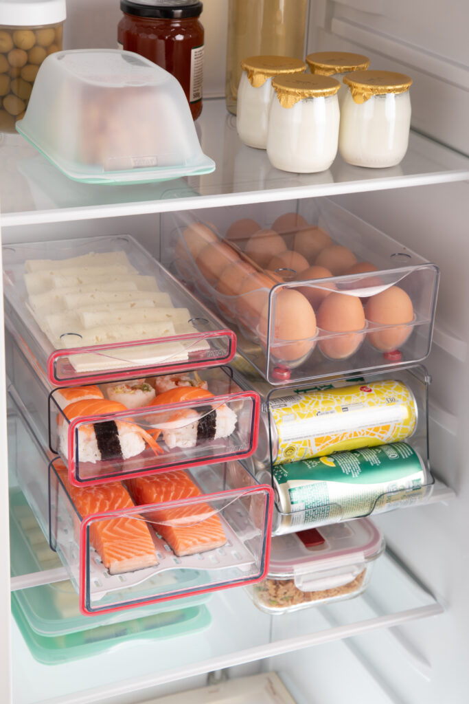 Este cambio, aparentemente sencillo, tiene un impacto directo en la experiencia diaria: permite localizar los alimentos rápidamente, ayuda a maximizar el espacio disponible y evita la frustración de no encontrar lo que buscas, al mismo tiempo que aporta una sensación constante de orden, control y claridad. Además, los cajones se mantienen siempre en su sitio gracias a sus tacos antideslizantes, lo que refuerza esa sensación de estabilidad y organización incluso cuando la nevera está llena.