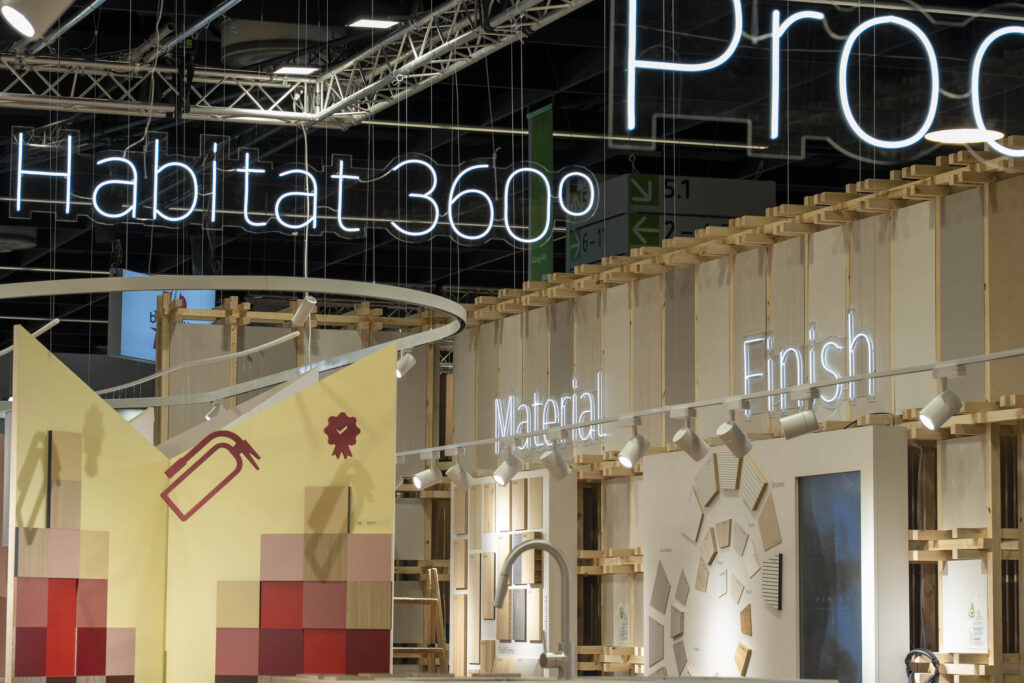3. Cuatro escenografías con soluciones de producto innovadoras para aplicaciones muy específicas fruto de esta especialización, como son: ignífugos, frentes y lacados, hábitats exteriores y complementos.