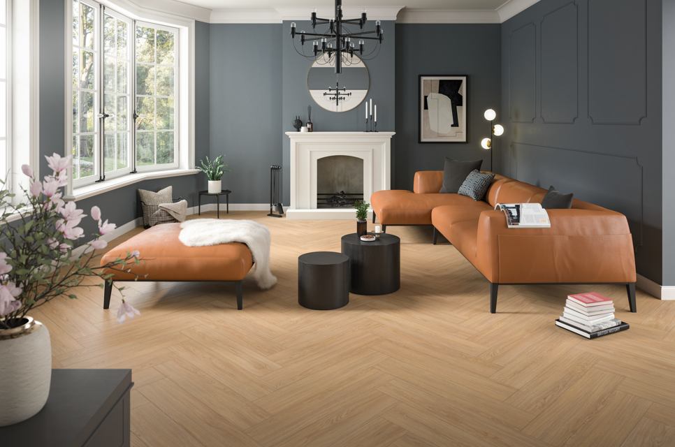 Diseños Geométricos: También serán tendencia los patrones como el damero, combinando parquet con otros materiales para lograr un look más sofisticado. La gama Espiga 8/32 Roble Baronia Arena EL 2133, de la nueva colección Egger Pro, ofrece suelos laminados de alta calidad que combinan diseño moderno y funcionalidad. Como parte de la colección Egger Pro, está fabricada a partir de madera como materia prima renovable, brindando una opción sostenible sin comprometer la durabilidad y la estética.