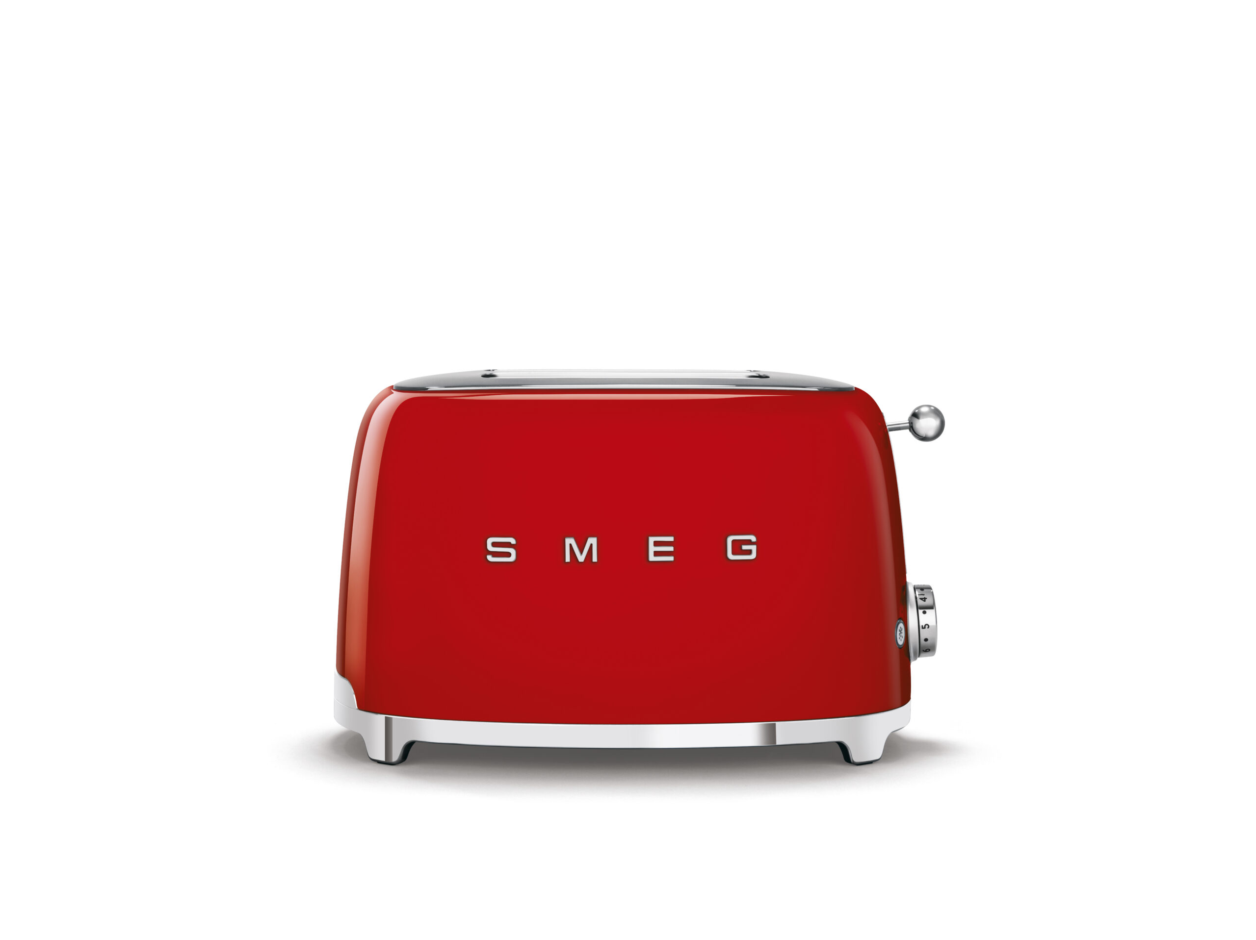 Tostadora Smeg, con su diseño retro y capacidad para tostar dos rebanadas de manera uniforme.