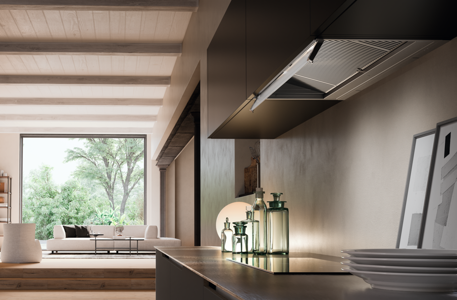 La nueva Secret forma parte de la familia de campanas integrables, concebidas para quedar completamente ocultas tras el mueble alto y mantener una línea estética limpia y actual. Con versiones de 60 y 90 cm en acero inoxidable, ofrece hasta 500 Pa de presión y un nivel sonoro mínimo de 47 dB(A), lo que la convierte en una aliada discreta y eficiente para espacios abiertos.